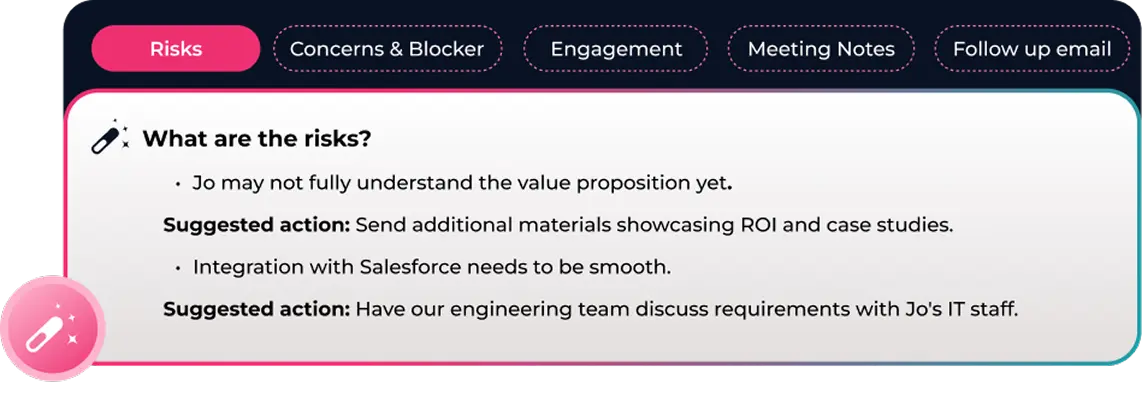With perfect focus, AI instantly recognises deal opportunities and risk patterns, follows your playbook’s rules - and automatically updates your CRM.