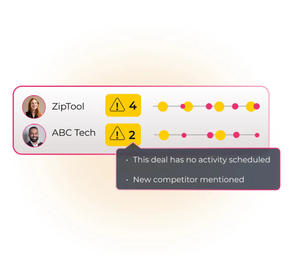 Achieve powerful visibility, with AI providing comprehensive summaries and insights across all your deals. See deal risks, next steps and how to win for all open deals, intelligently generated from multiple interactions and your best practice playbook.