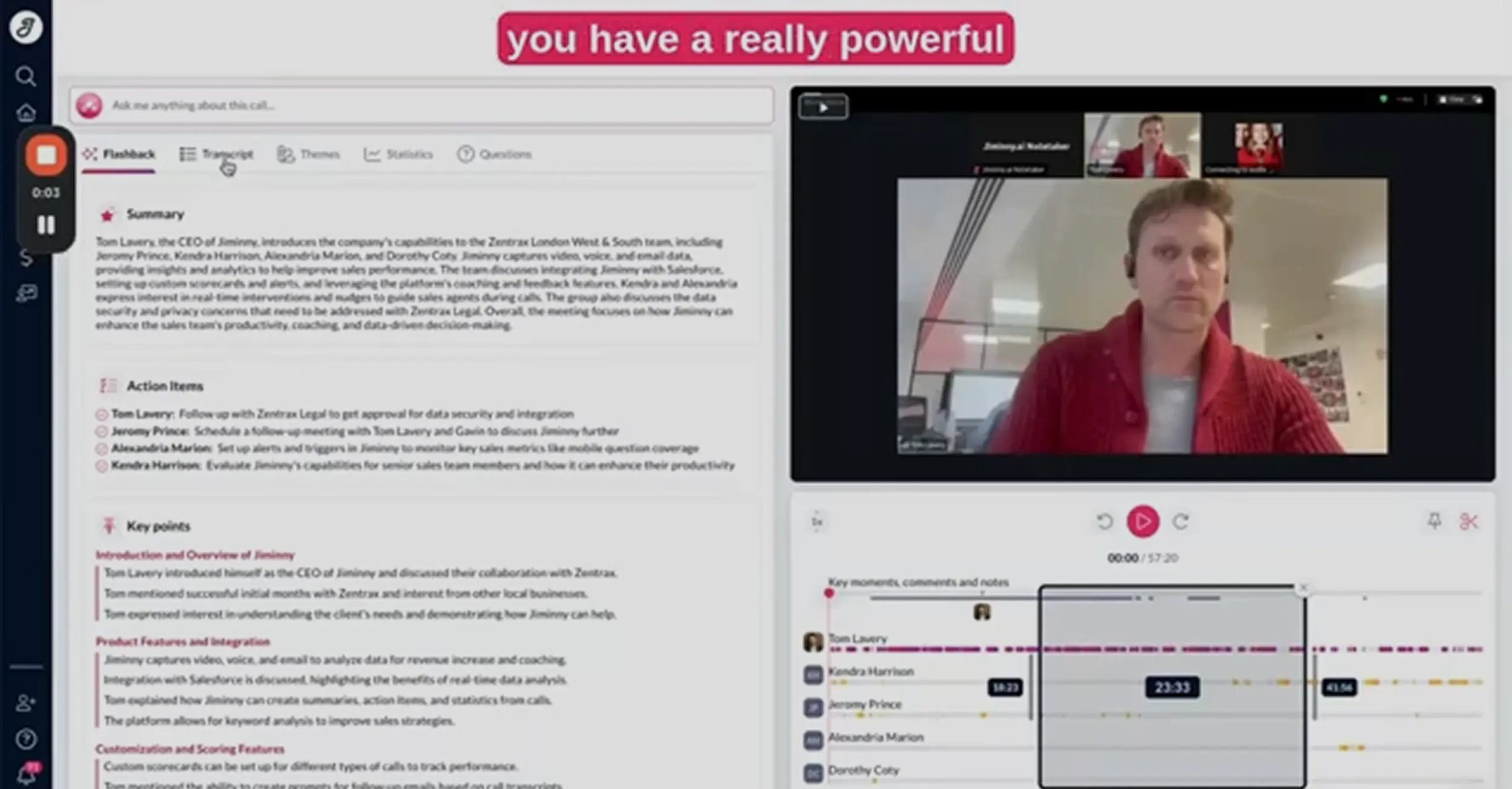 Jiminny goes beyond simple call transcription, it delivers leading conversation intelligence powered by AI:
