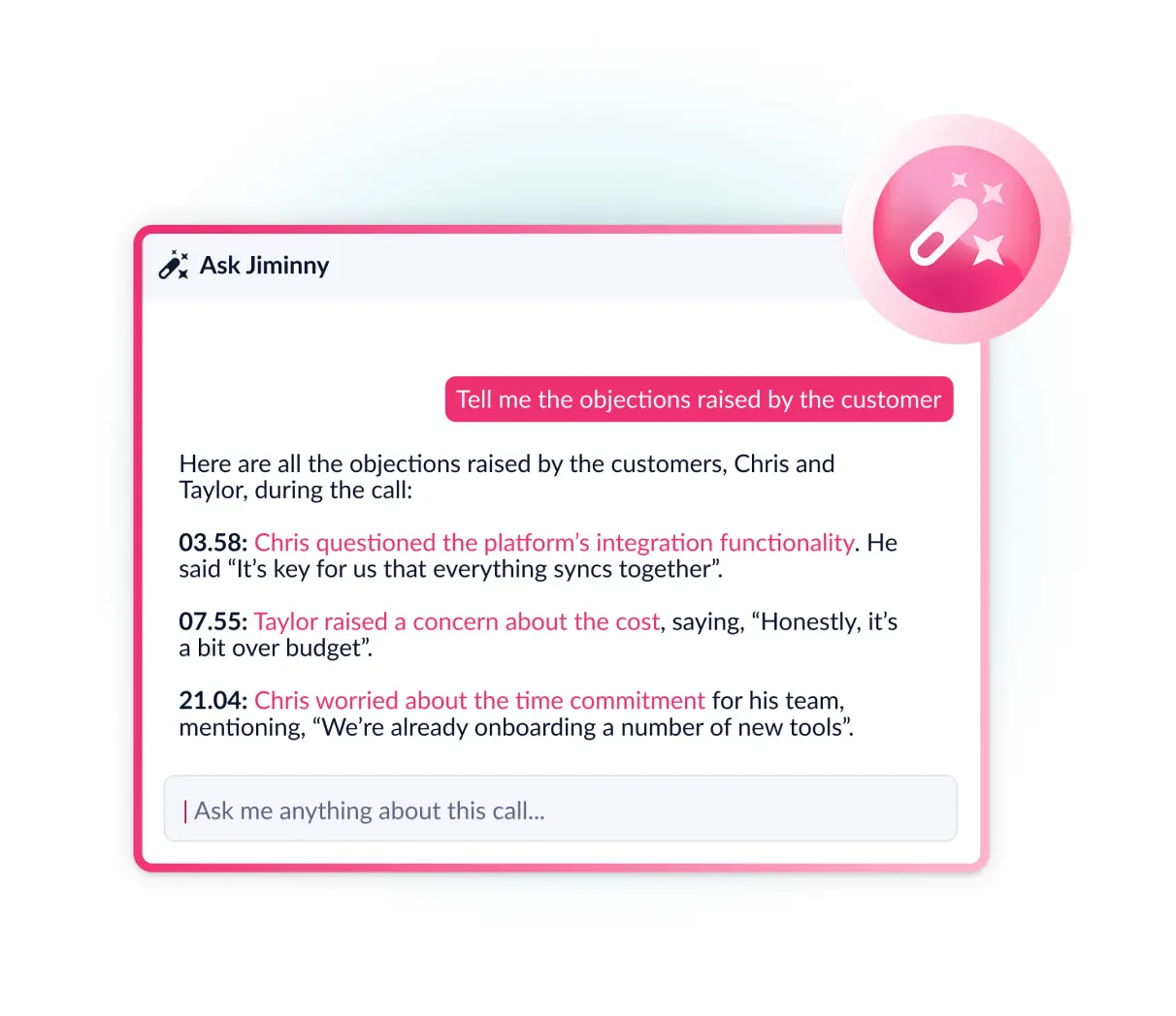 Jiminny’s AI-driven call transcription provides industry-leading accuracy, thanks to advanced speech recognition and machine learning models. It continuously improves over time and can distinguish between different speakers.