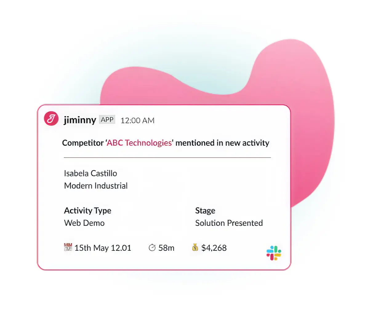 When you integrate Jiminny with your CRM, you create a complete, data-driven picture of your competitive landscape.